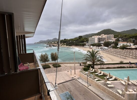 Am 03.10.2025 sind meine XYL Andrea, DA6AR, und ich Richtung Mallorca aufgebrochen. Im Gepäck war ein HF Transceiver von Xiegu, ein G90 mit 20 Watt Ausgangsleistung. Als Antenne war eine HF-P1 Portabelantenne von Difona dabei. Diese ist flexibel einsetzbar, sowohl auf einem Stativ, als auch mit einer Klemmhalterung z. B. am Balkongeländer. Da wir in unserem Hotel das Glück hatten ein Balkongeländer aus Metall vorzufinden, kam die Klemmhalterung der Antenne zum Einsatz.