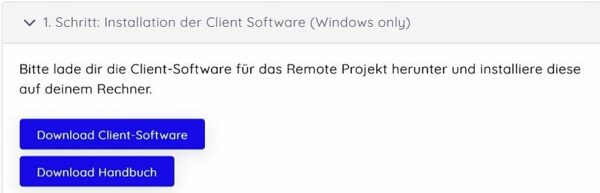 Als nächster Schritt folgen der Download und Installation der Client Software.
