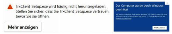 Bei der Installieren trat folgende Sicherheitswarnung von Windows auf, die sicherlich auf meine „harten Einstellungen“ zurückzuführen sind!